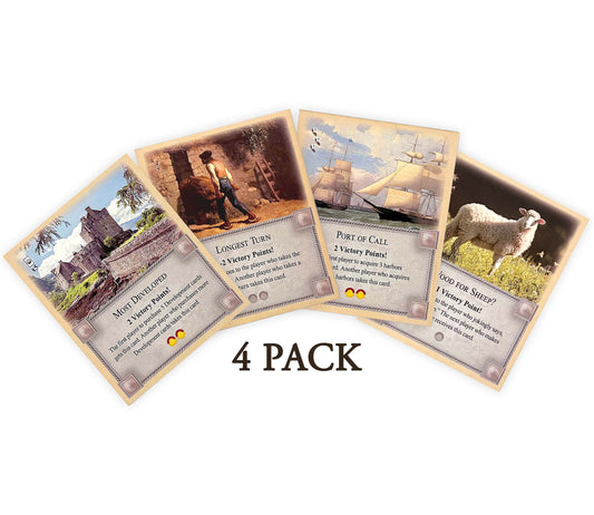 4-Pack Bonus Cards: Longest Turn, Wood for Sheep, Most Developed and Port of Call compatible with Catan's Settlers of Catan and Expansions