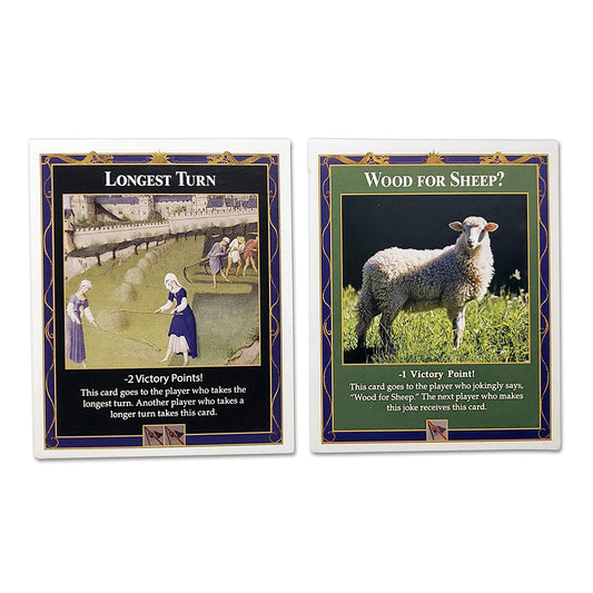 Longest Turn and Wood for Sheep Penalty Cards compatible with Catan's Settlers of Catan (4th Edition), Seafarers and Catan Expansions