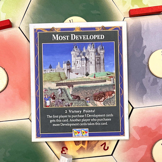 Most Developed Bonus Card compatible with Catan's Settlers of Catan and Expansions
