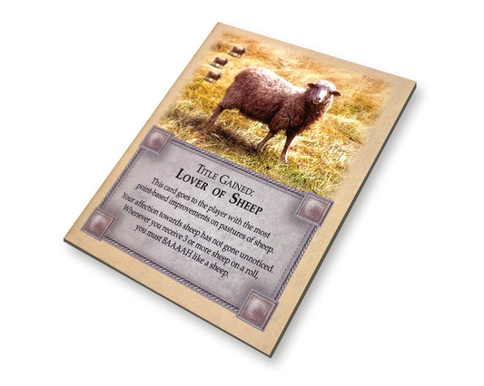 Lover of Sheep Title Gained Card compatible with Catan's Settlers of Catan and Catan Expansions