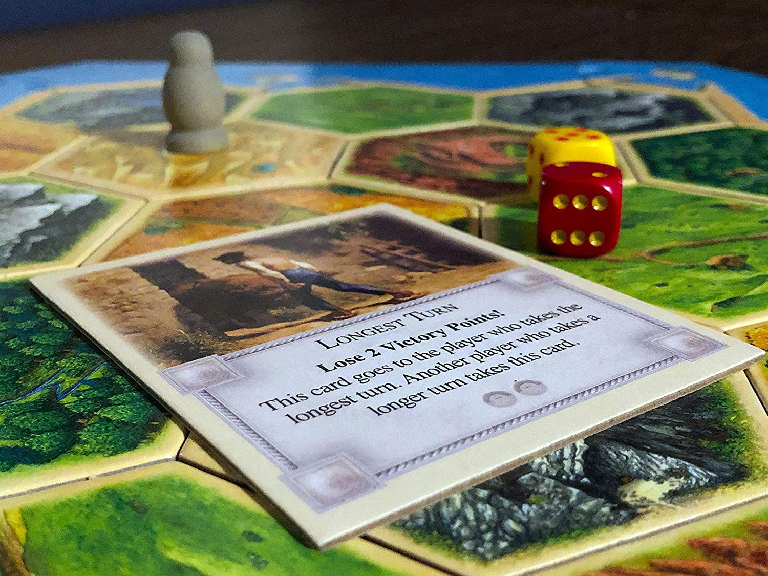 Longest Turn Card compatible with Catan's Settlers of Catan, Seafarers, Cities and Knights and Catan Expansions